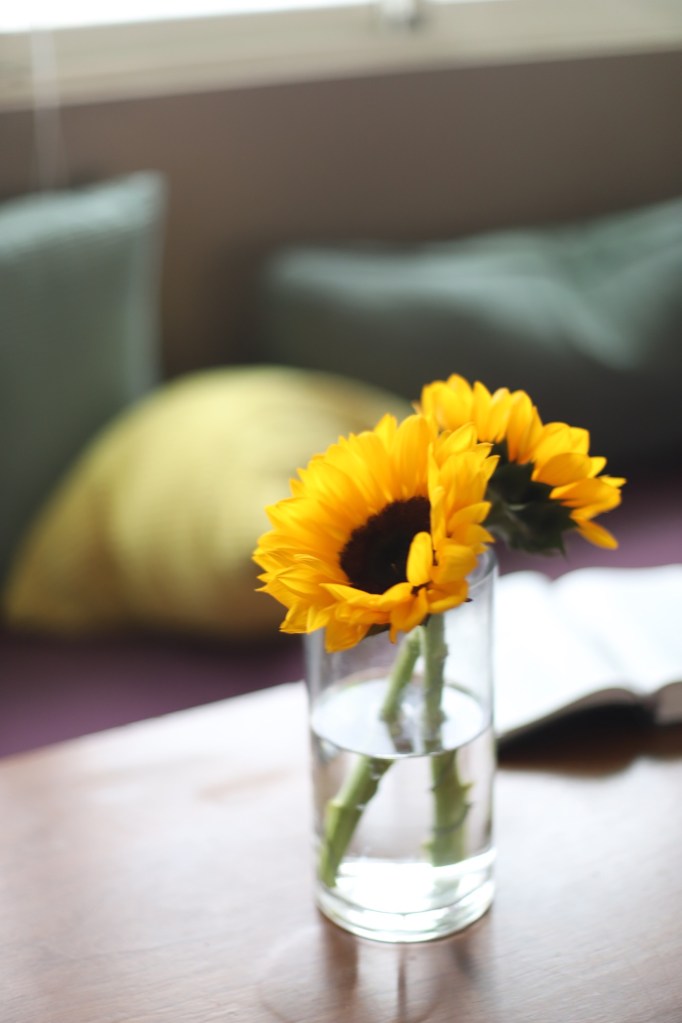 Oh also a random thing is that I got sunflowers for our Airbnb yesterday! For some reason, so many people had flowers in the MRT yesterday, so it made me want to get some, too. I found a vase in the Airbnb, and put sunflowers in it: