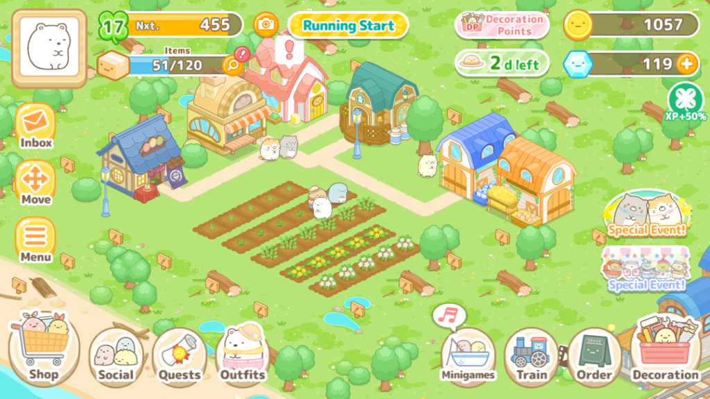 …downloading a really cute farming game on my phone ! It’s called “Sumikkogurashi farm”:
