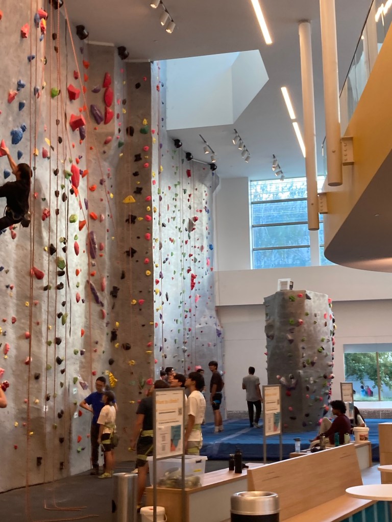 …finding out that my university has a teeny tiny bouldering wall at the gym, with a good amount of challenging routes: