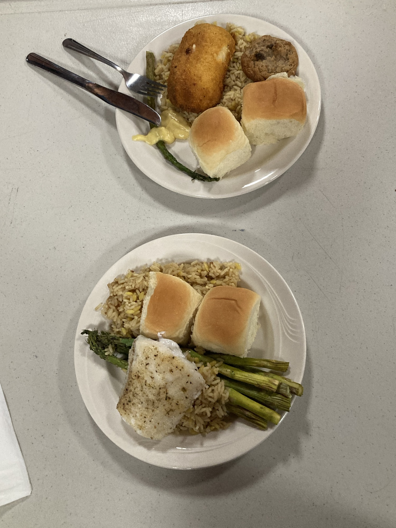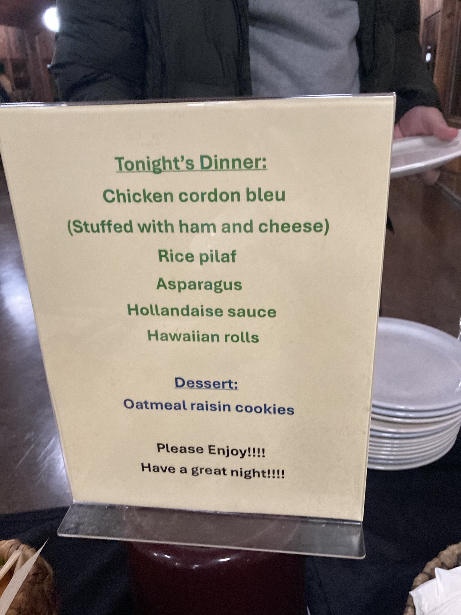 After free time was dinner ! This was the menu for dinner and the food that was served. They even had a pescatarian option for me, which was awesome :