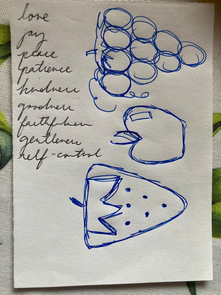 - Something I appreciate my current home church pastor sharing with regards to reading scripture is reading through the lens of “is this developing any of the fruit of the spirits in me?”/”what fruits of the spirit do I see here?” For my usual scripture reading, I read from two sections of the Bible. Currently I am in Proverbs (almost done) and in Judges. Proverbs is a much easier read than Judges, so I have this little card I made to help me remember to be looking for the fruits of the spirit as a sort of bookmark in my Bible: