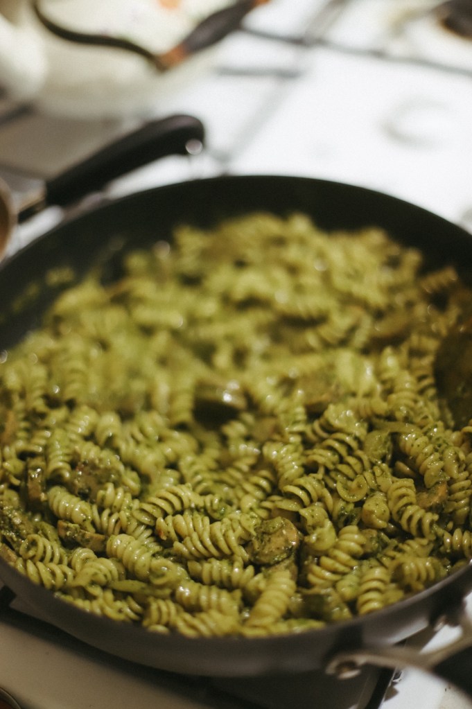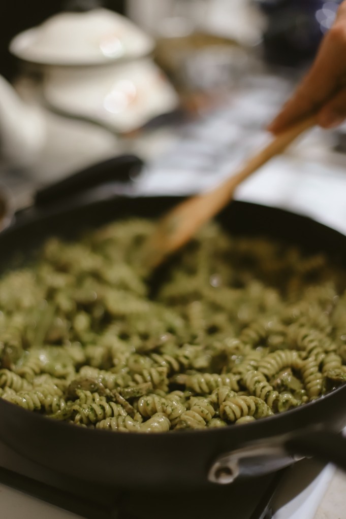 … making pasta with home-made pesto sauce for Thanksgiving with the in-laws: