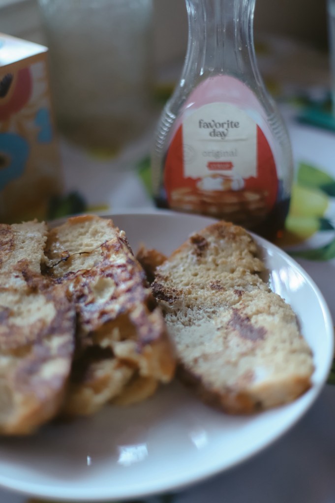 …fasting and then breaking my fast with an avocado egg toast, and Jacob breaking it with french toast: