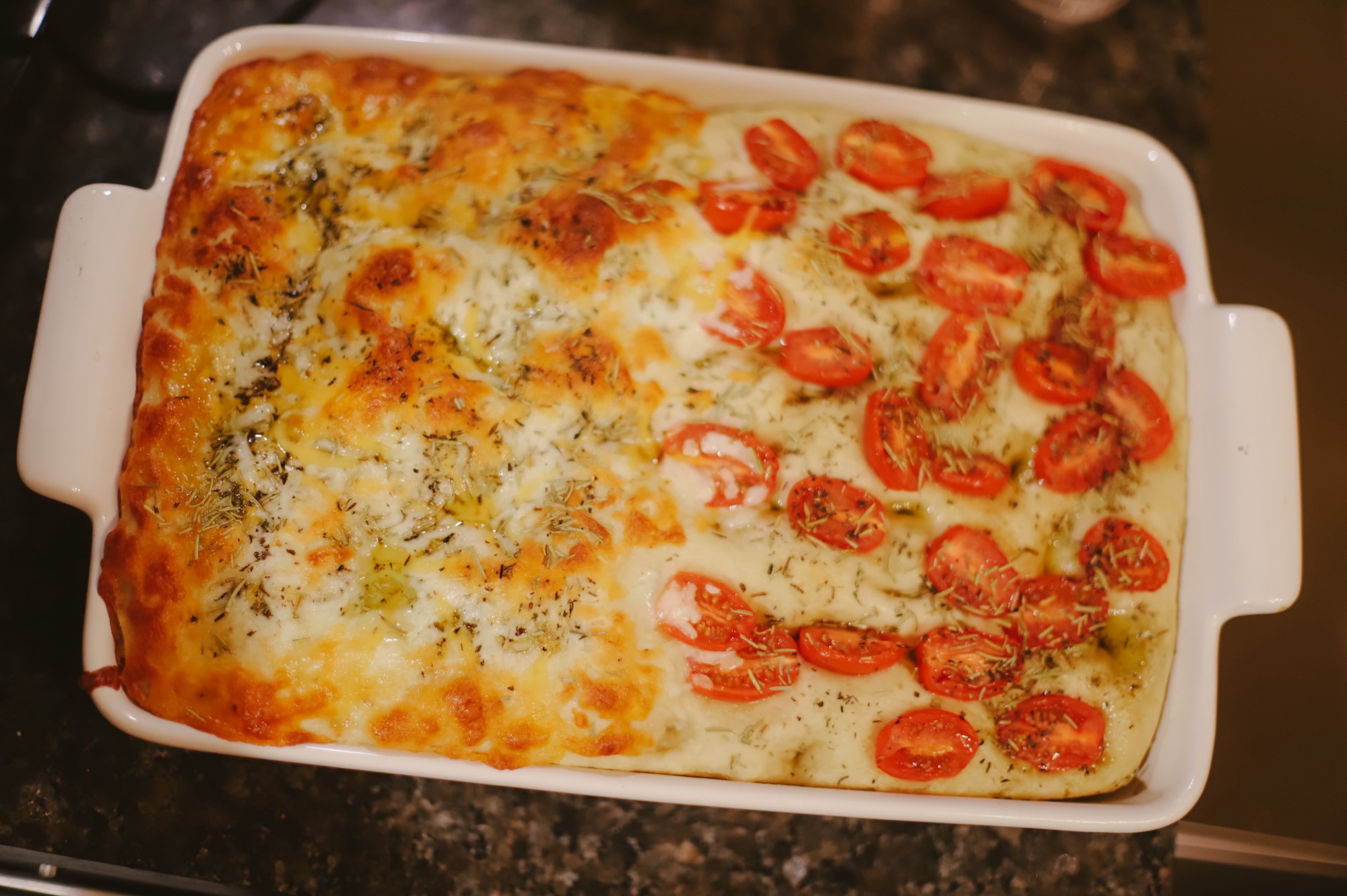 …making more focaccia bread ! I actually had to throw out a good chunk of the tomato side, because a lot of the dough hadn’t properly cooked: