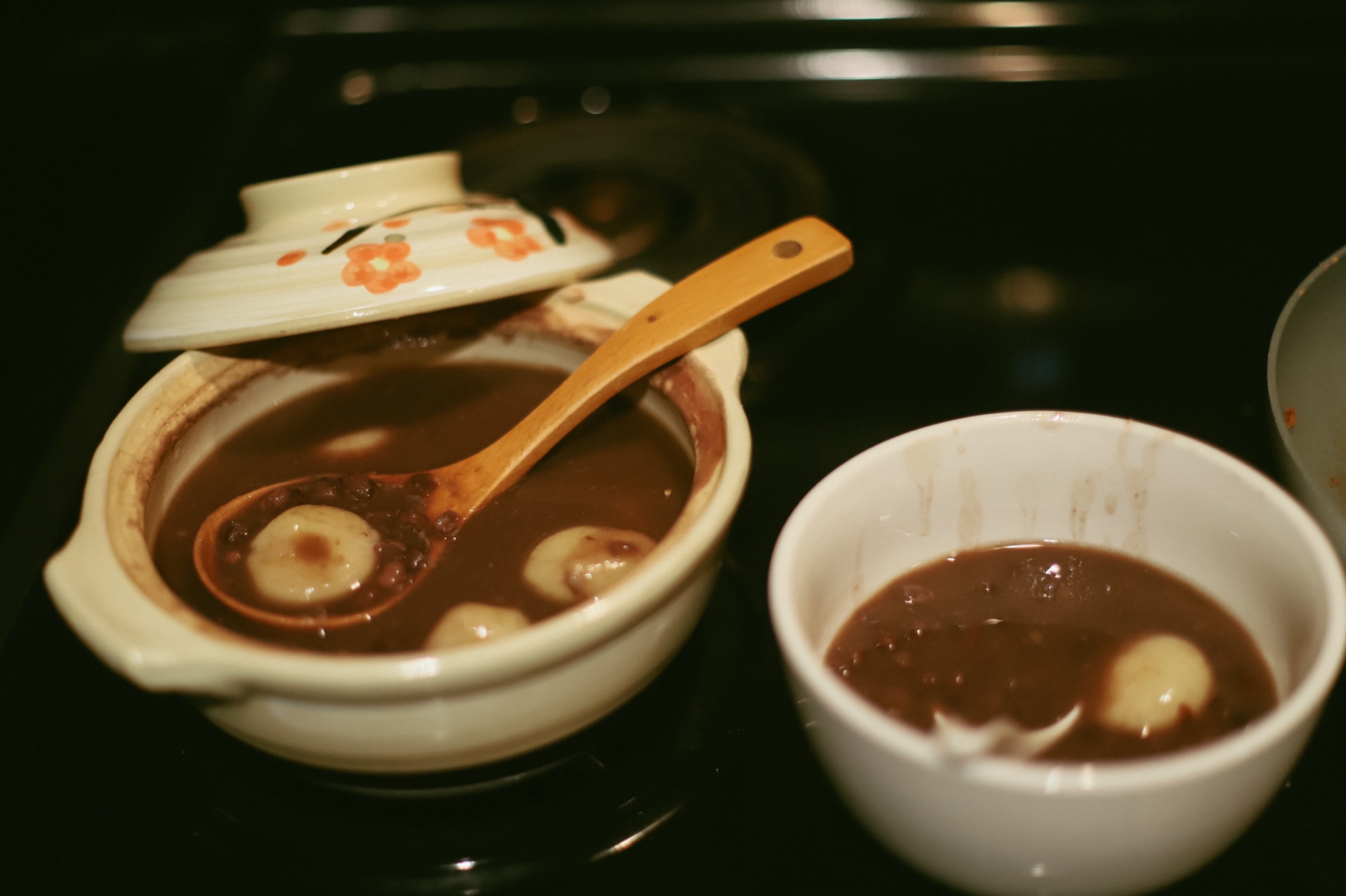.. making red bean soup for the first time as well ! with a japanese clay pot similar to that of my mother’s (but smaller, since I’m the only one who eats soups in this house). I saved some of the tang yuan’s for my red bean soup !: