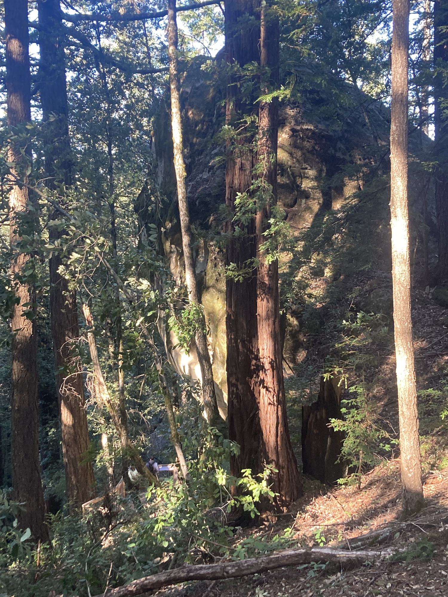 …going hiking at El Corte de Madera Creek park to see a giant rock and also have somewhat of an ocean view while hiking (on the photo on the left you can see a tiny human for reference, to see how large the rock is):