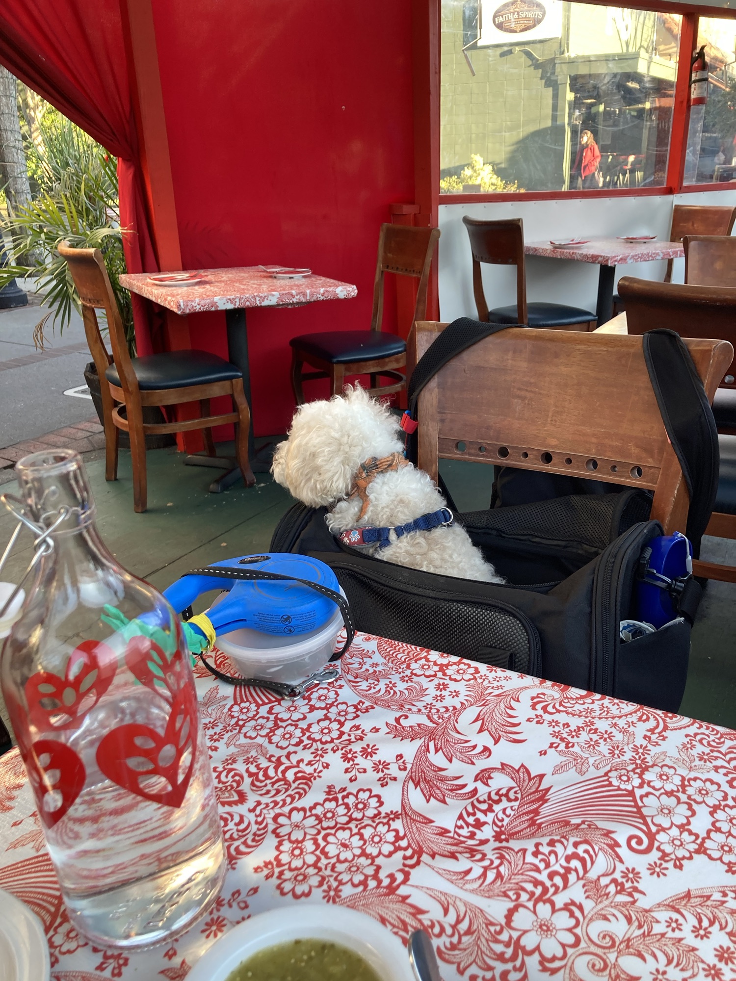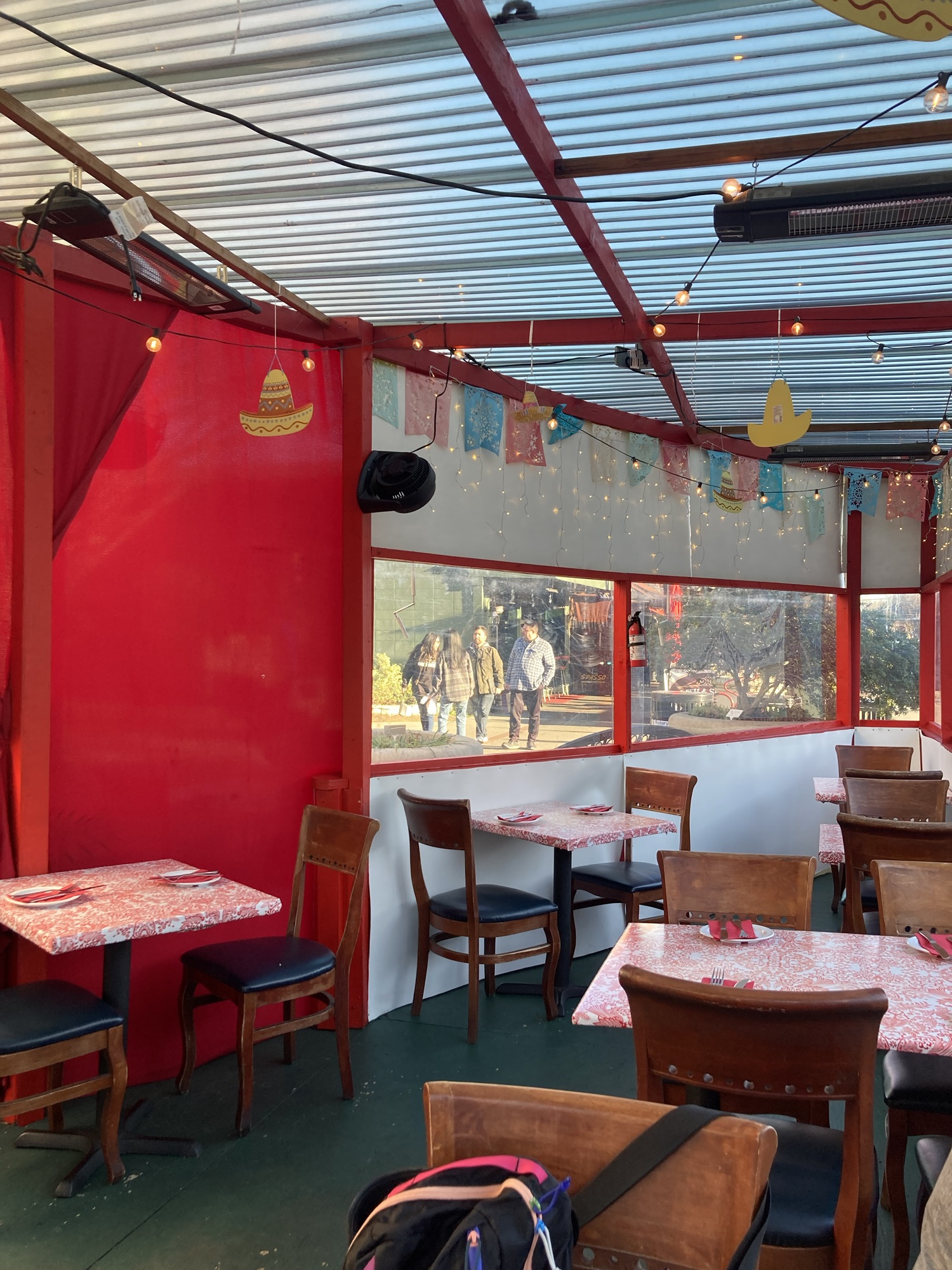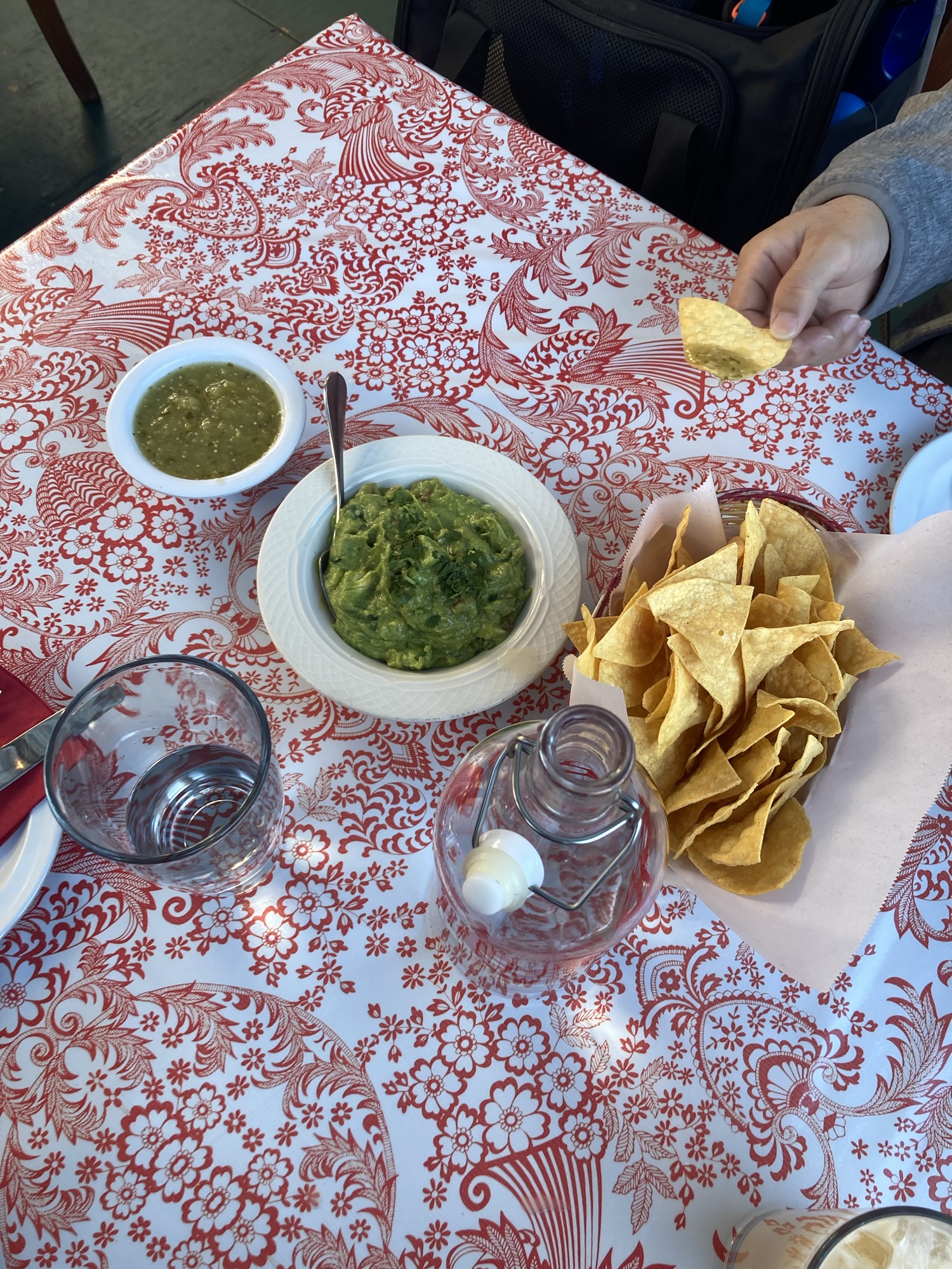 … eating at a very delicious Mexican restaurant in downtown San Carlos after hiking (ft. the back of JJ):