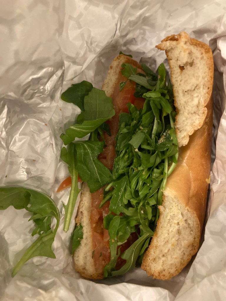 On our last day, we checked out of our AirBnB and headed to a coffee shop to wait out the rain. I got a pretty yummy breakfast sandwich: