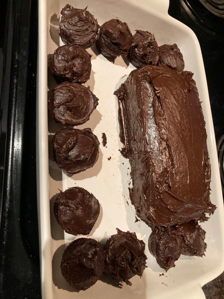…making cupcakes for a friend’s birthday and then making an extra cake loaf for Jacob and I: