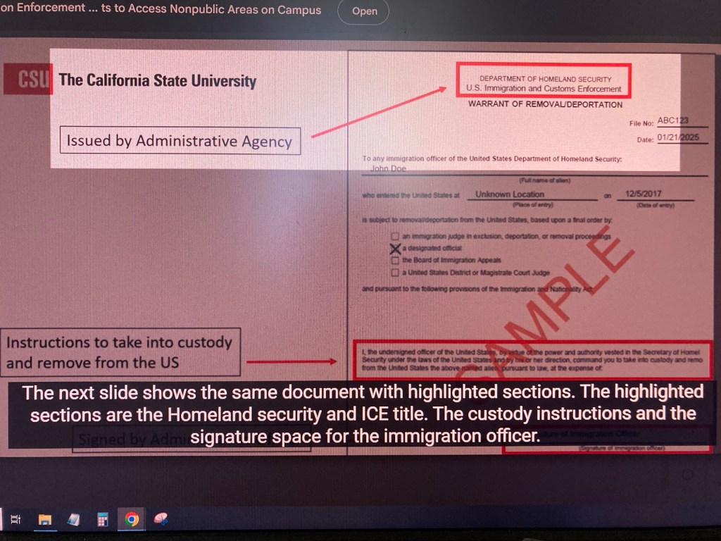 … having to watch a video of legal steps in light of the current administration… essentially, if ICE do come on campus, we have to direct them to our university police department: