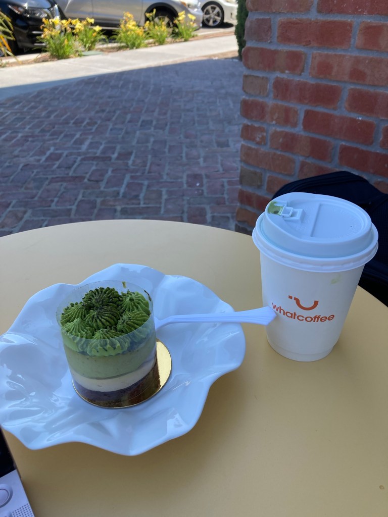 …going to another coffee shop and ordering some matcha latte and a very tasty matcha tiramisu (where the matcha taste is nice and strong):