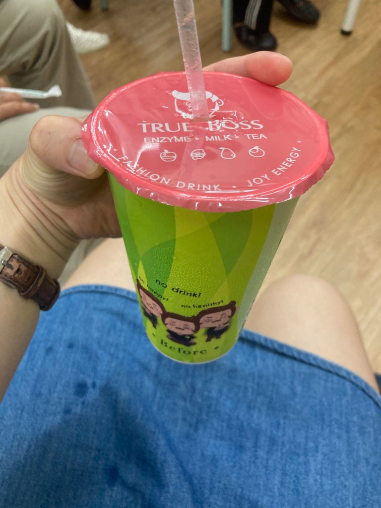 Afterwards, they invited me to their book club meeting, but first I ordered an iced barley tea drink. I asked for it with half sugar, but honestly I should have had it with no sugar because I have never had it with sugar until today: