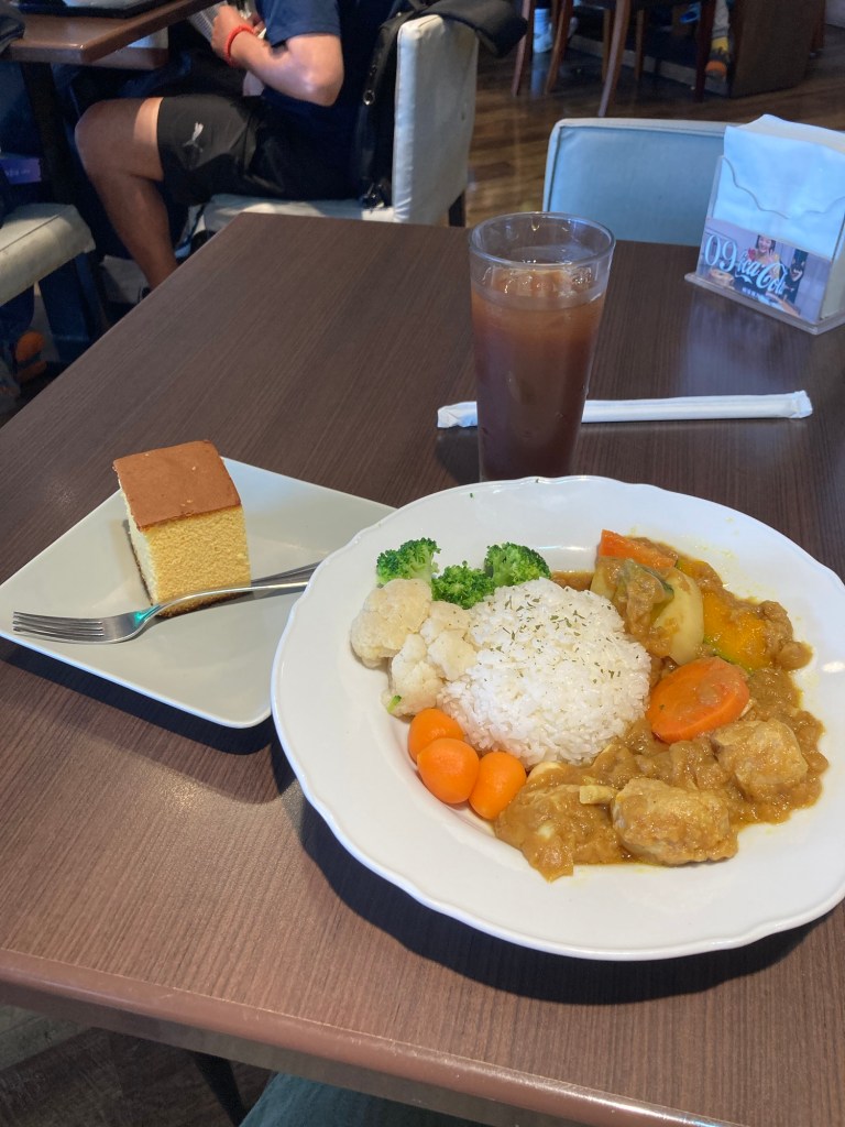 In the photos above, you can see there was this super cute shop with a koi pond right by the experimental farm on campus. I wish I had gotten lunch there. Instead, I went off campus briefly to get a fish bento (it was okay, the fish didn’t taste very fresh), hoping I could get some matcha ice cream for dessert but I found out that I couldn’t get ice cream during the summer. And so I opted to get a cheesecake, but you can’t only get a cheesecake if you want to eat in the shop. So I took it to go. It was very underwhelming, and it’s making me want to try to find a good matcha shop in the city for my last day tomorrow. Here are photos of my lunch and the matcha place:
