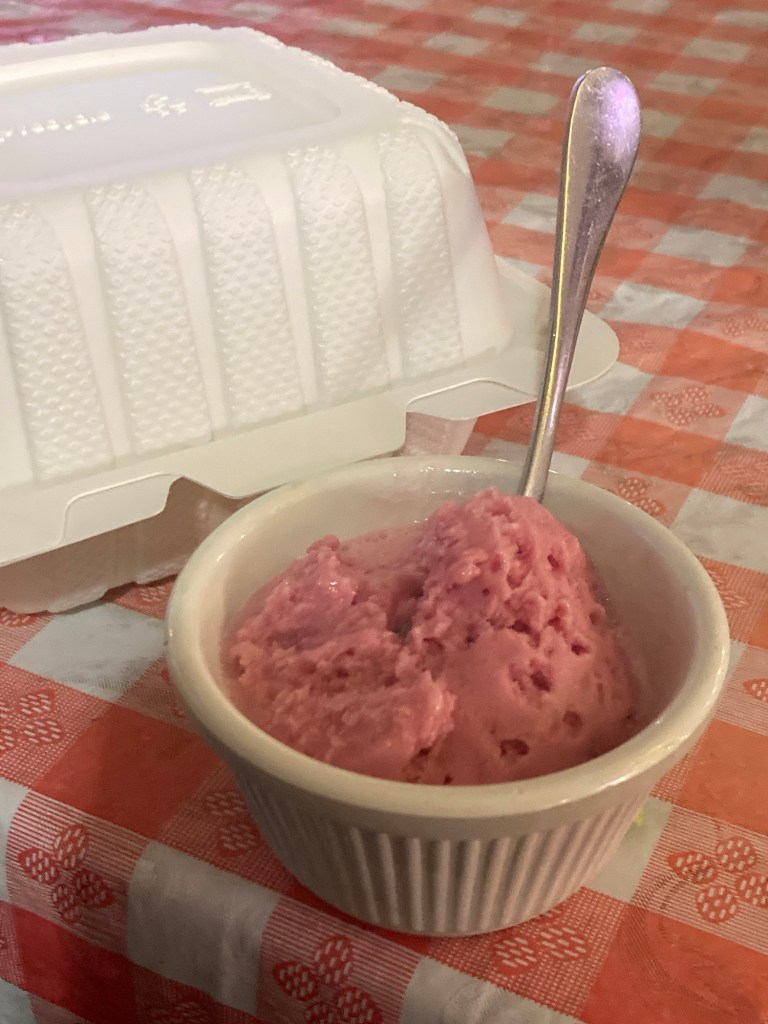 …having another belated birthday dinner with Jacob and my dad where Jacob could order a giant empanada and we got free sorbet at the end:
