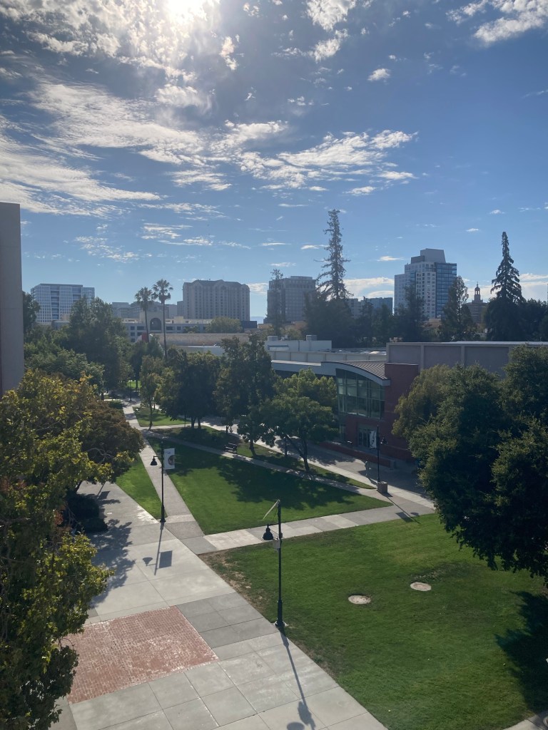 …finally starting classes again and returning to campus as only a student and not as a student and an employee: