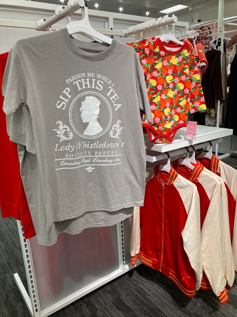 …finding a Bridgerton shirt next to some Lunar New Year clothing at Target: