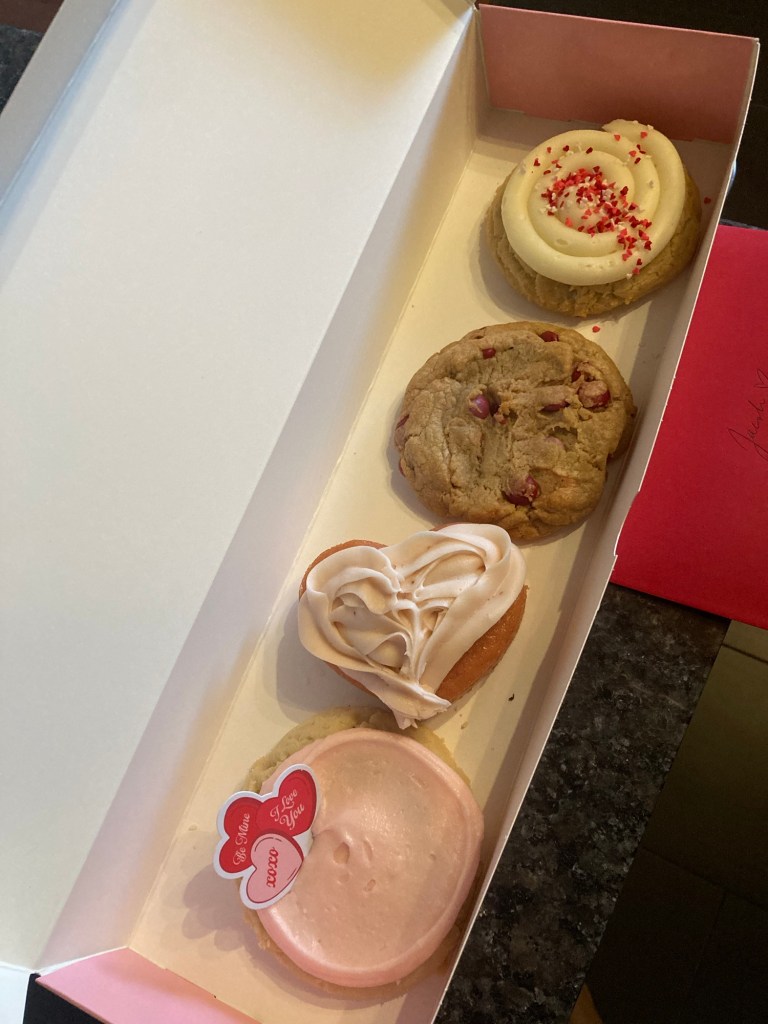 …getting Valentine’s Day edition crumbl cookies for my Jacob: