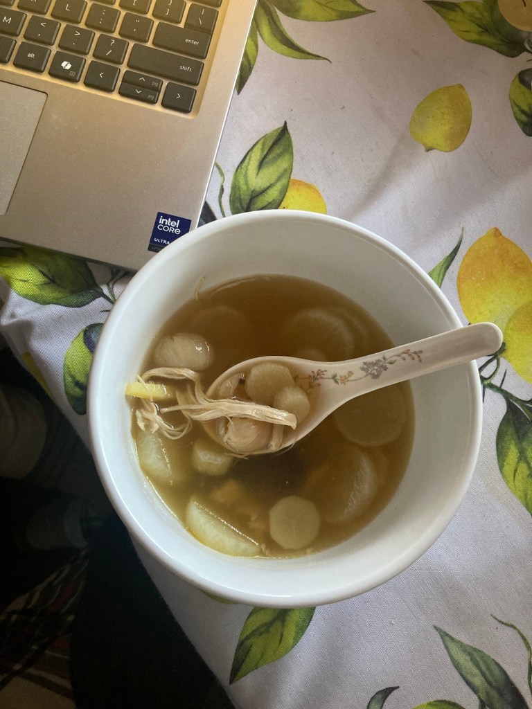 …adding daikon in my monthly herbal chicken soup breakfast recipe to help with phlegm/dampness: